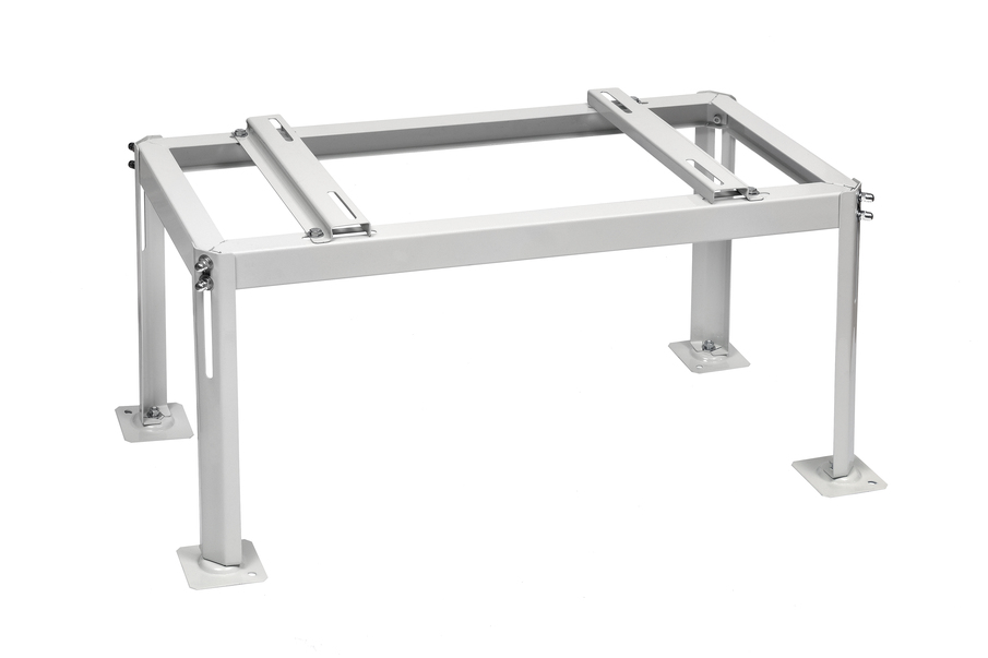 Justerbar ramme gjør at høyden også kan justeres og tilpasses ujevnt underlag. Føttene forankres i underlaget. Leveres flatpakket. Elforsinket og pulverlakkert. Høyde: 350-400 mm Dybde: 380 mm Bredde: 850 mm Maks. belastning: 100 kg Vekt: 7,5 kg