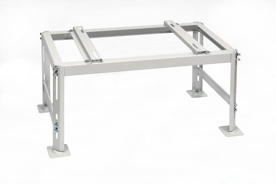 Justerbar ramme gjør at høyden også kan justeres og tilpasses ujevnt underlag. Føttene forankres i underlaget. Leveres flatpakket i kartonger á 3 stk.