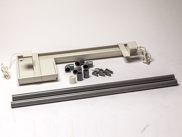 Drypp-panne med varme og inntil 3 meters drensrør med varmekabel HADT96 har 140W varme i selve pannen og 75W varmekabel til den medfølgende 32mm rørpakken. Pakken består av stuss til pannen med overgang til 32 mm muffe, 3 stk 90° bend, 3 stk 45° bend, 3 muffer 3 stk rør på 1 meter og 3 stk klammer med plugger og skruer. Avløpet må legges slik at det ikke blokkeres. Termostatstyrt, innslag ved +3°C +/-2°C. Leveres flatpakket med enkel montering og passer på alle våre konsoller fra QsanTec, med unntak av GB-47.