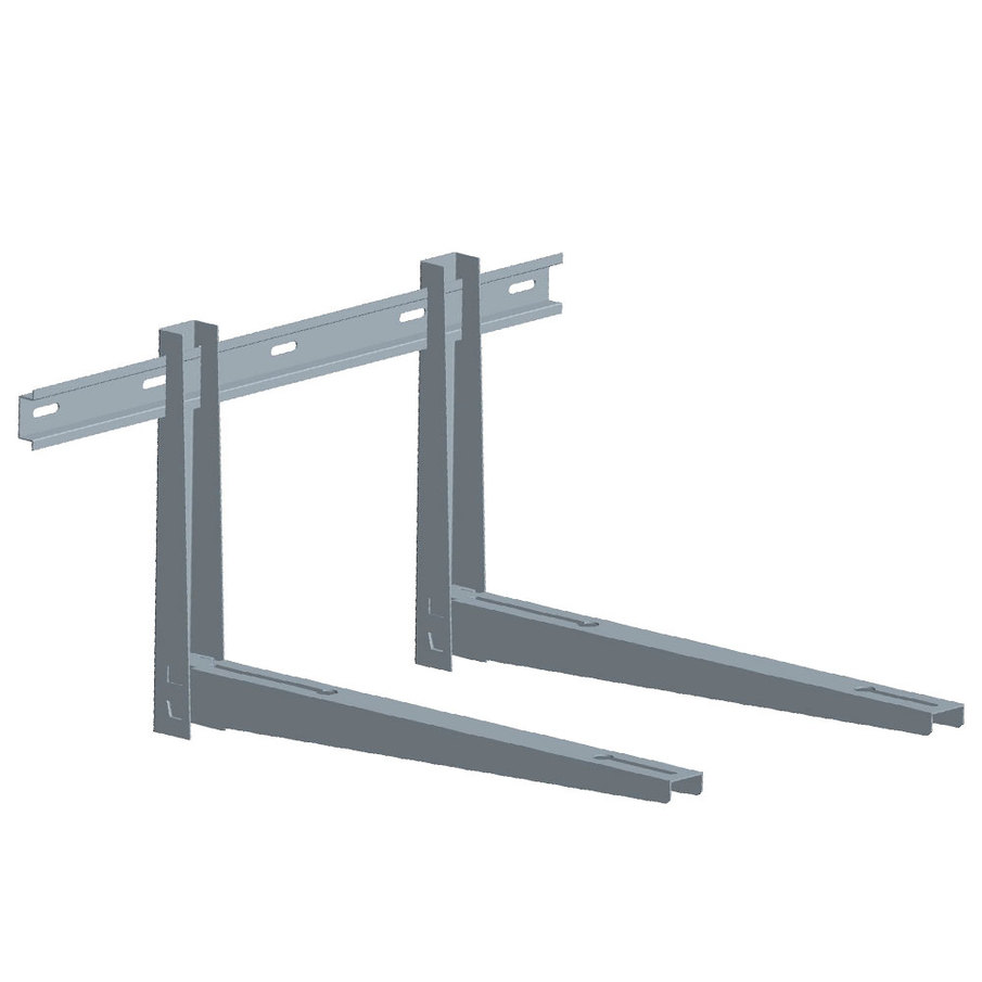 Konsoll med skinne for stabil og enkel montasje til større utedeler. De vertikale delene monteres på etter hvert som skinnen monteres i veggen, armene skyves på. Justering i bakkant gjør det enkelt å justere helling/høyde på utedel.