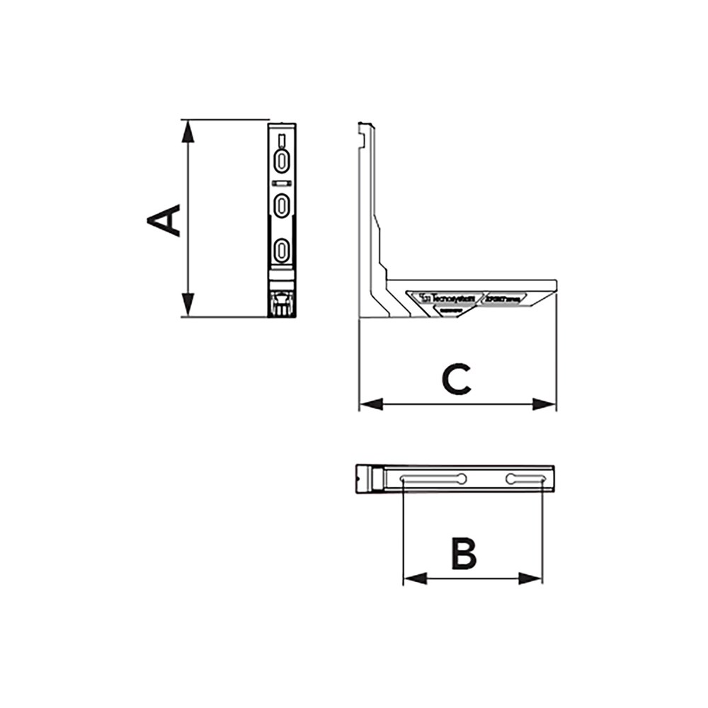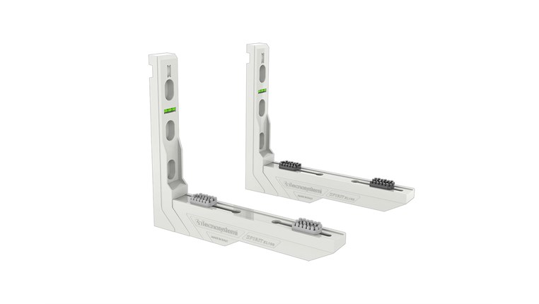 Lett og solid brakett i glassfiber fra Technosystemi. Rustfri montasjeskruer følger med. 100kg kapasitet.