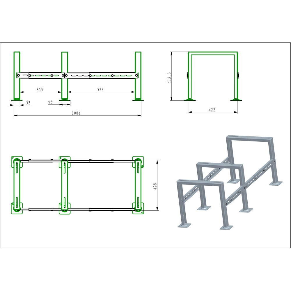 Ekstra kraftig og fleksibelt stativ for tyngre utedeler. Justerbar ramme og ben gjør at høyden og bredden kan justeres og tilpasses ujevnt underlag og tilpasses mange modeller. Føttene forankres i underlaget. Leveres flatpakket.