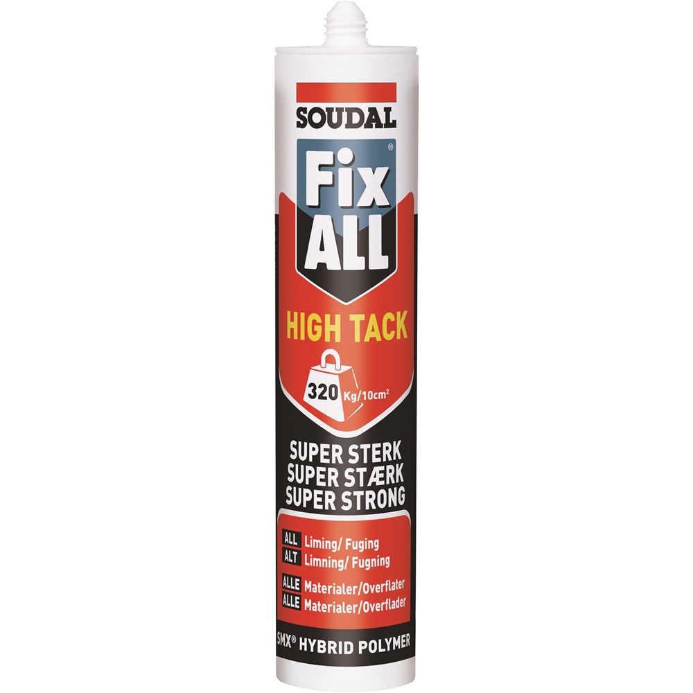 Fix All High Tack er et tilsvarende produkt som Fix All Flexi, men med lang større prestanda på umiddelbar vedheft og limstyrke. Fugemassen er basert på MS-Polymer. Dette er produktet for større og tyngre konstruksjoner. Tilfredsstiller kravene til GEV EMICODE EC1plus(very low emissions)
