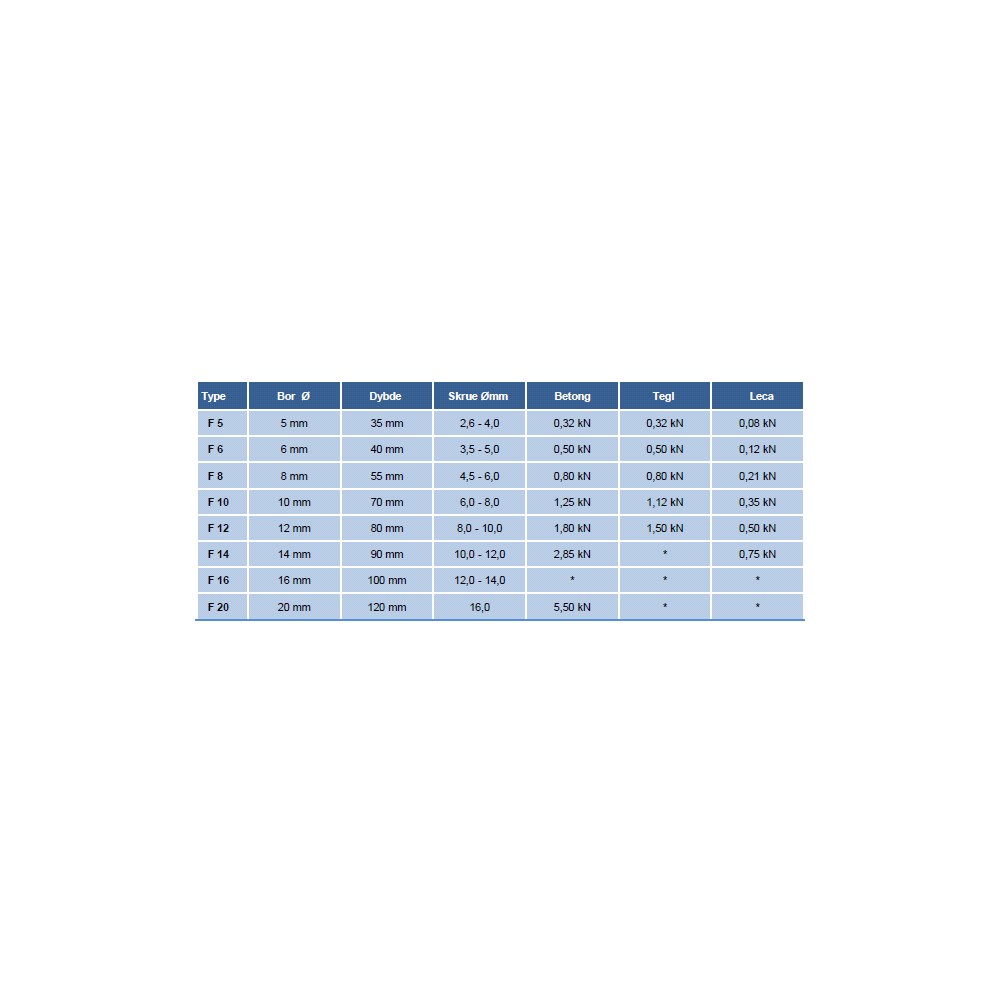 MEA Normalplugg er spesial konstruert med "gjeller" på sidene som gir pluggen god ekspasjon i fire retninger. På den måten vil holdfastheten øke og gi en meget sterk innfestning.