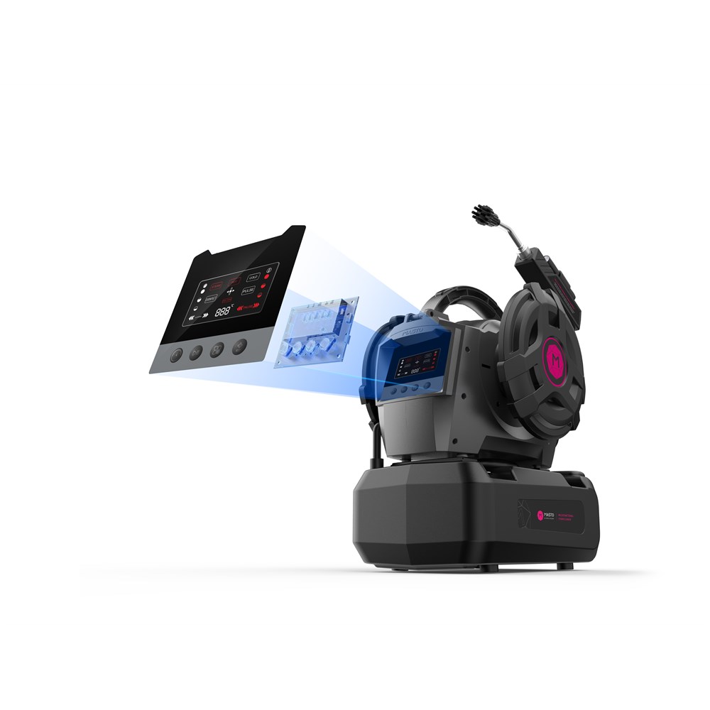 Damprenseren har en 4 meter lang slange, integrert stemmesystem, intelligent fjernkontrollpistol,
