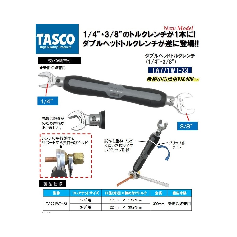 Momentnøkkel Tasco 1/4"x3/8" Kombinert 17/22mm -17,6/41,1Nm