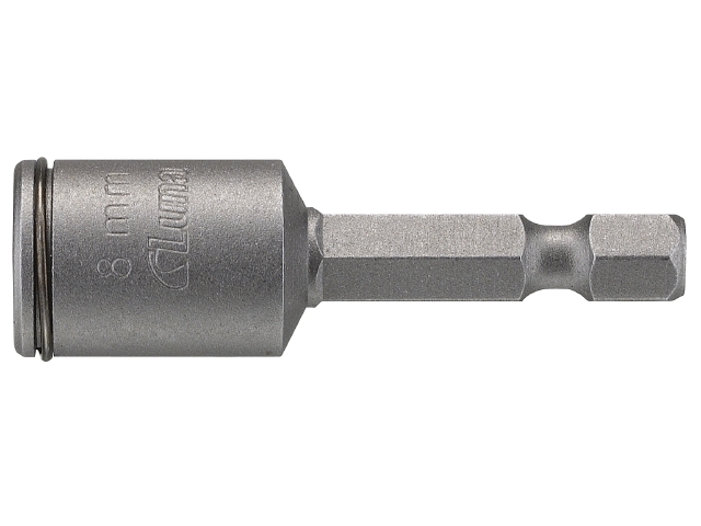 Bitsholder med 8mm sekskant og fjær som holder skruen. Passer bl.a. til
