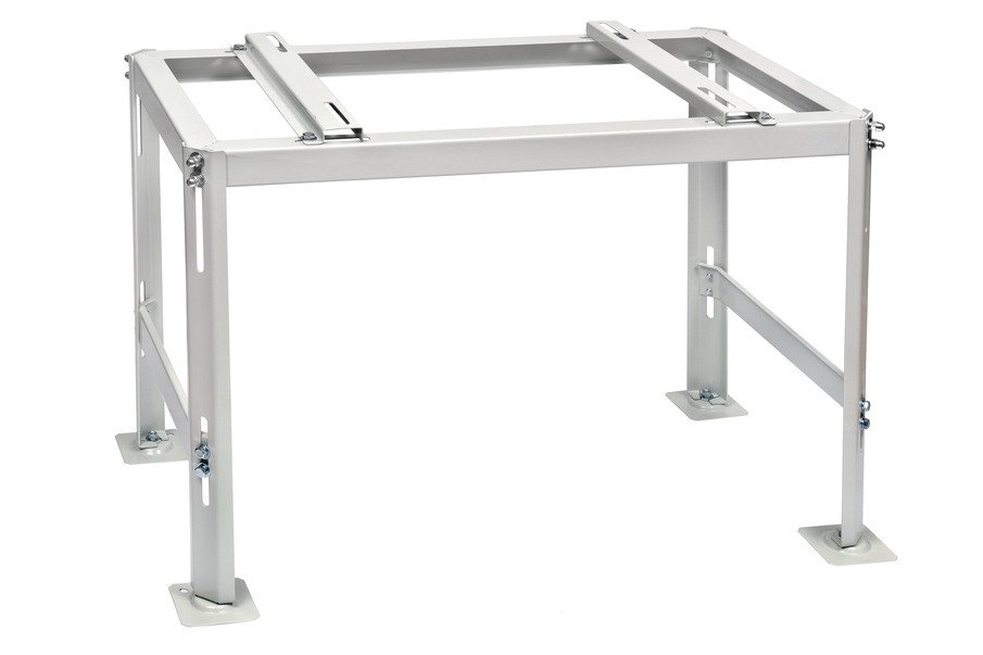 Justerbar ramme gjør at høyden også kan justeres og tilpasses ujevnt underlag. Føttene forankres i underlaget. Forsterket for større utedeler.Leveres flatpakket i kartonger á 2 stk.