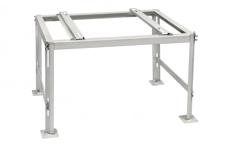 Justerbar ramme gjør at høyden også kan justeres og tilpasses ujevnt underlag. Føttene forankres i underlaget. Leveres flatpakket i kartonger á 2 stk.