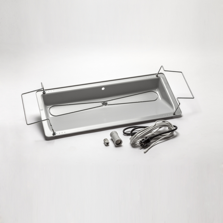 Drypp-panne med varme og inntil 3 meters drensrør med varmekabel HADT96 har 140W varme i selve pannen og 75W varmekabel til den medfølgende 32mm rørpakken. Pakken består av stuss til pannen med overgang til 32 mm muffe, 3 stk 90° bend, 3 stk 45° bend, 3 muffer 3 stk rør på 1 meter og 3 stk klammer med plugger og skruer. Avløpet må legges slik at det ikke blokkeres. Termostatstyrt, innslag ved +3°C +/-2°C. Leveres flatpakket med enkel montering og passer på alle våre konsoller fra QsanTec, med unntak av GB-47.