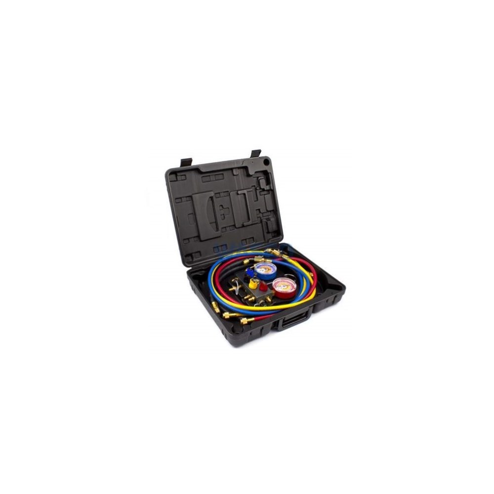 Komplett manometersett med 4 slanger og gummibeskyttelse.