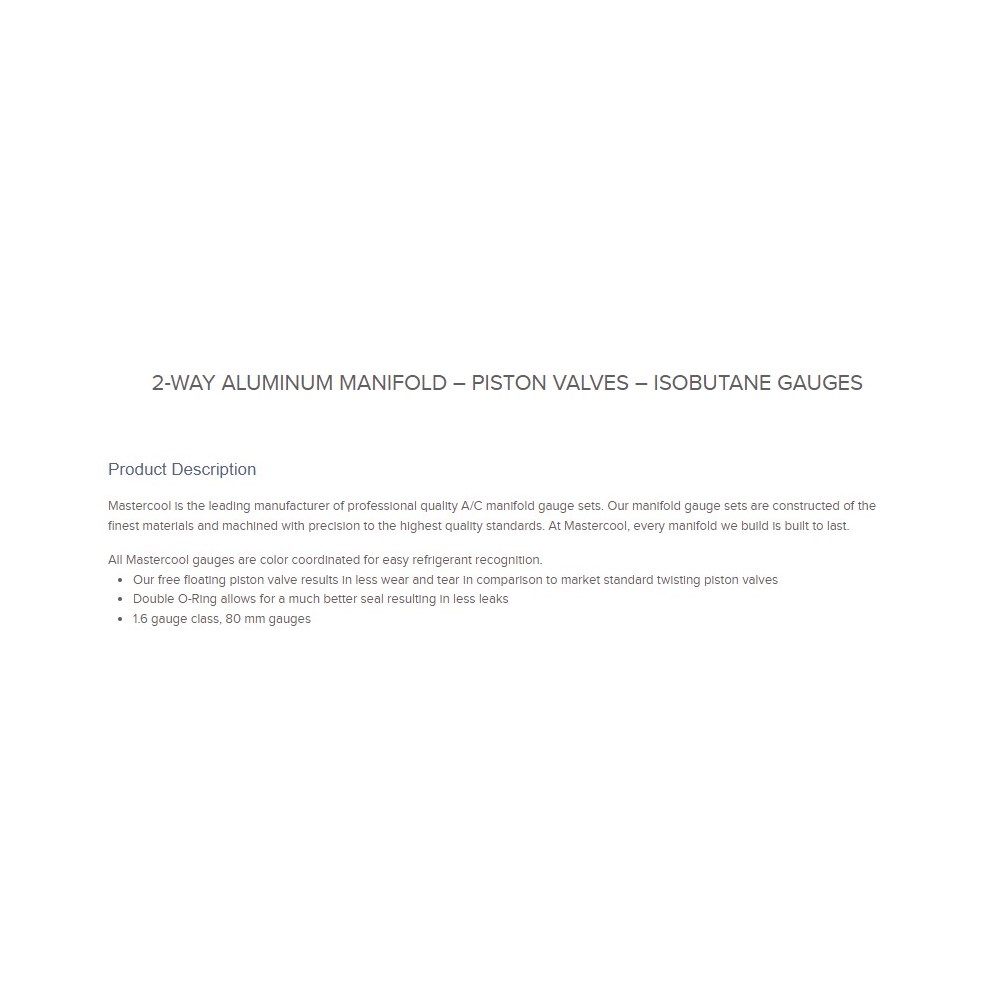 Mastercool 2-veis manifold Isobutane R290, R600A, R1270 Sett med slanger 1,5m